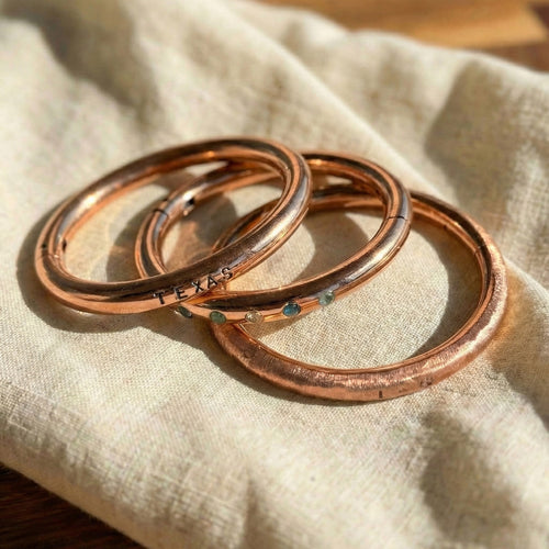 Our bull ring bracelets are handcrafted bangle bracelets made from solid brass, copper, and stainless steel never plated, never hollow. Each piece is finished by hand with hammered, satin, or distressed textures, optional stone settings, and custom stamping.
